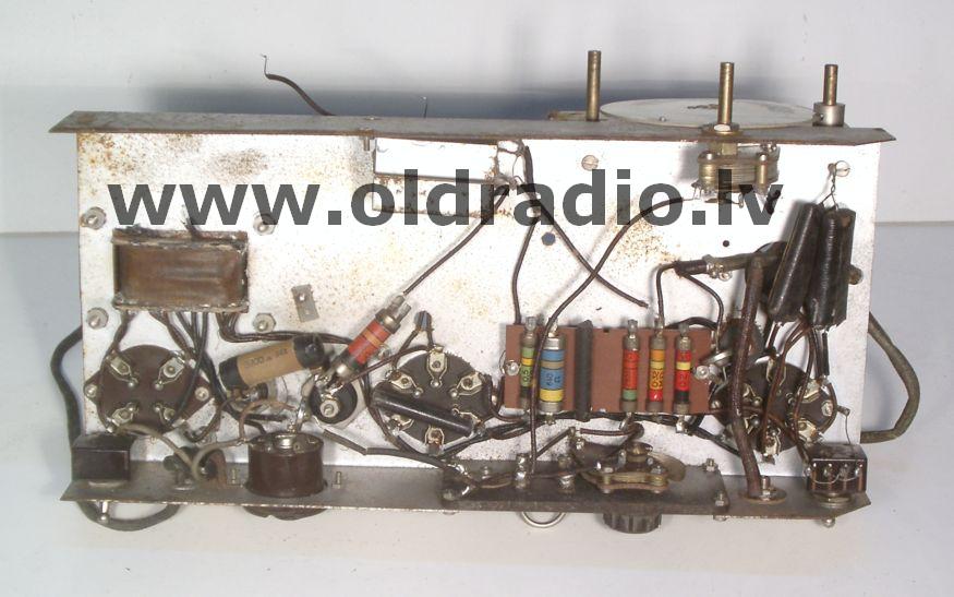 за шкалой настройки, которая закреплена на шасси внутри