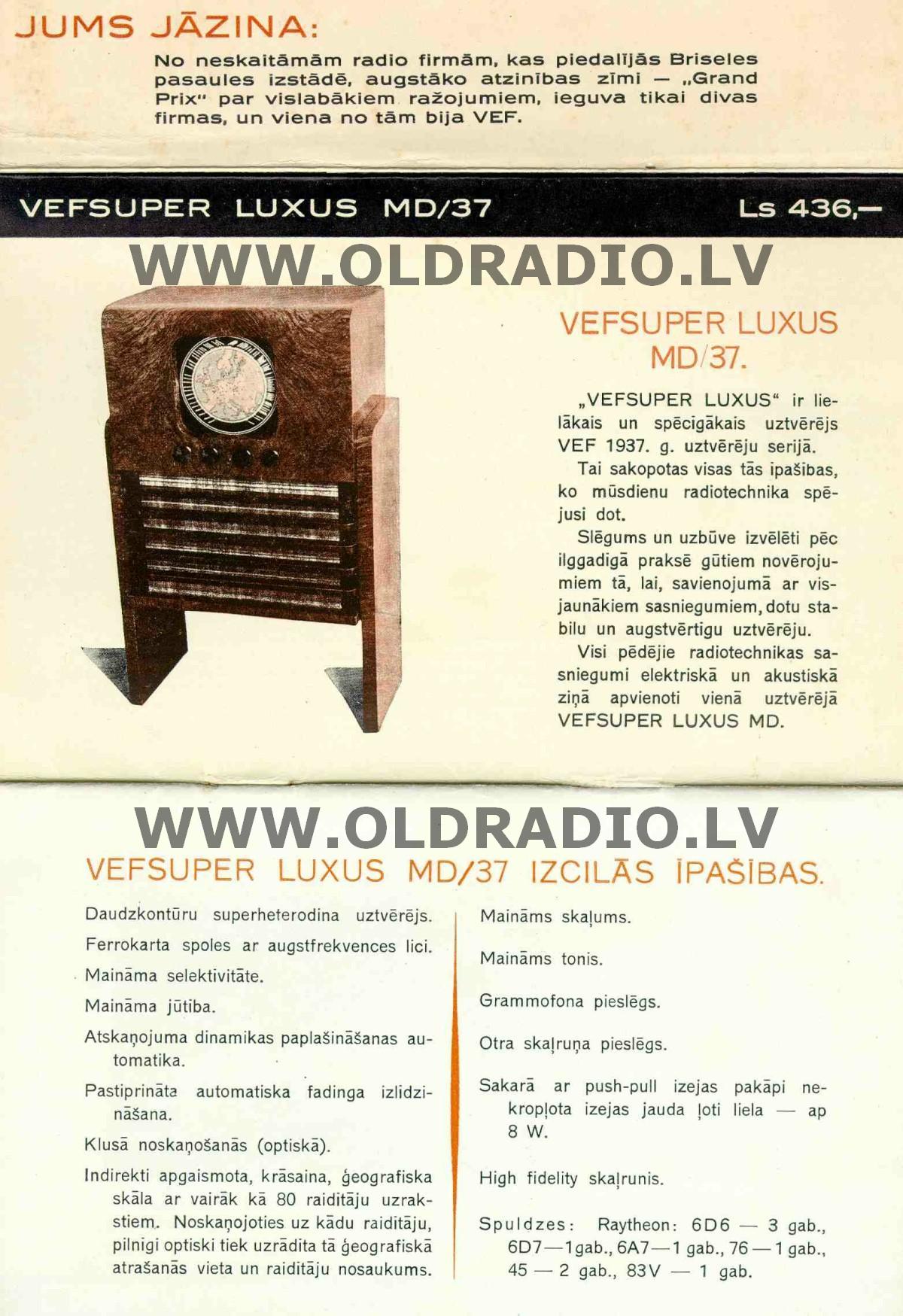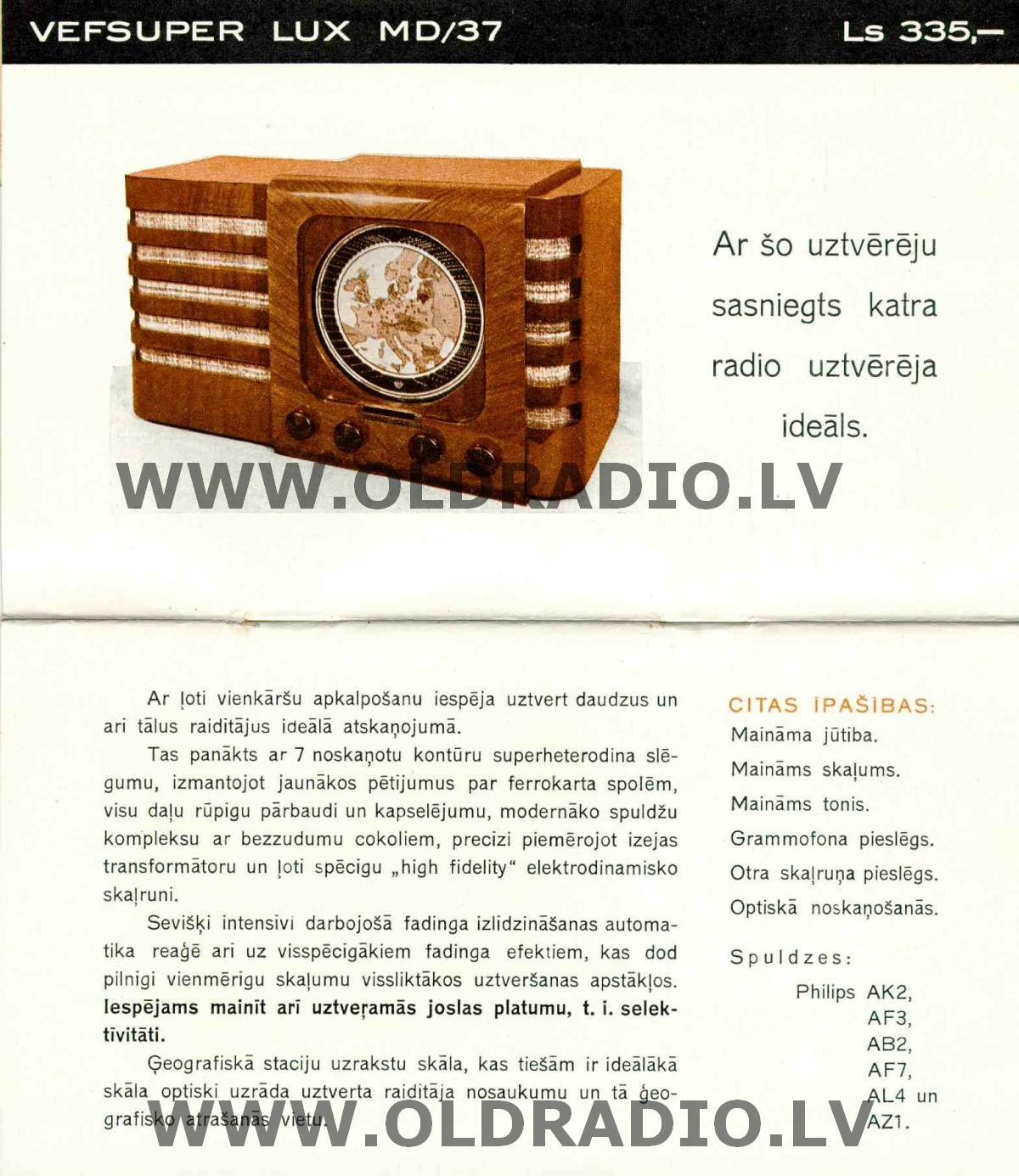 Каталог продукции завода ВЭФ за 1937 год.