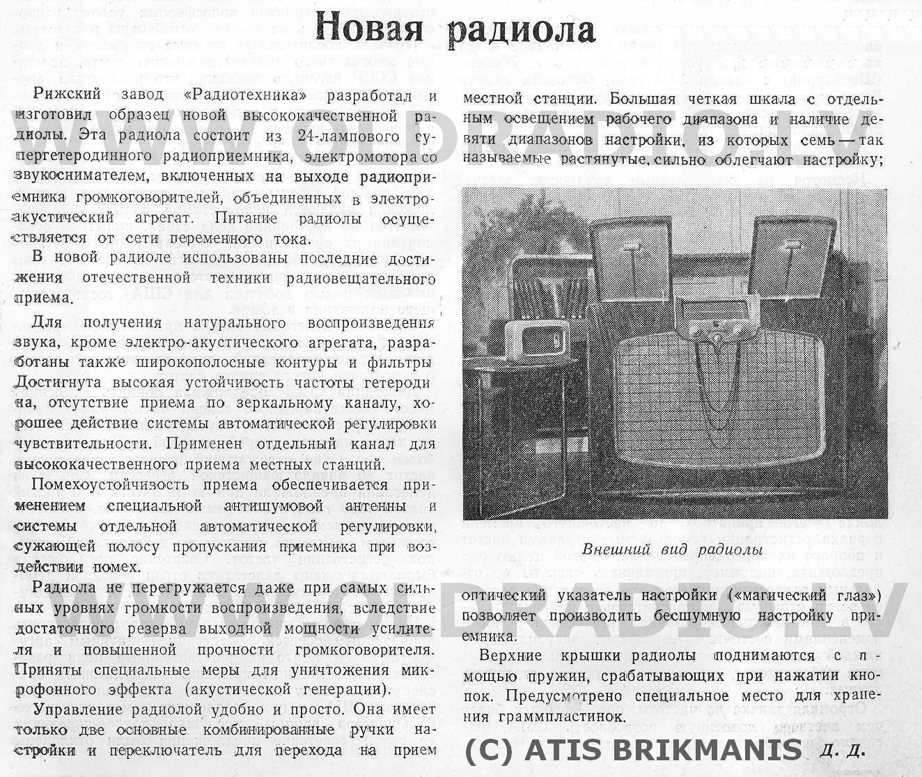 упоминается радиола спроектированная во второй половине 40-х